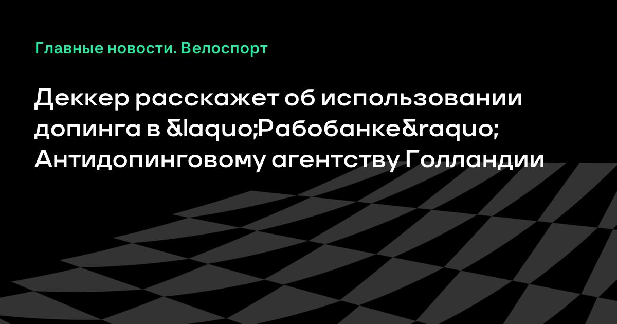Напомним, что в 2009 году Деккер сдал положительный тест на эритропоэтин и отбыл двухлетнюю дисквалификацию. На прошлой неделе он заявил, что в «Рабобанке» допинг был «частью работы».