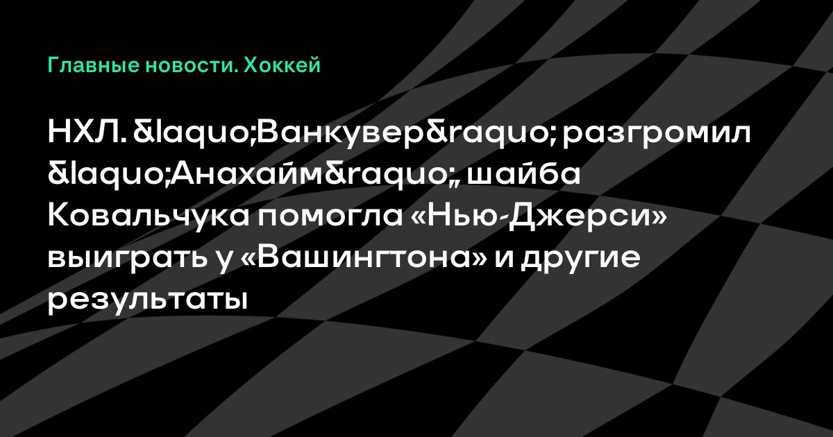 НХЛ. «Ванкувер» разгромил «Анахайм», шайба Ковальчука помогла «Нью-Джерси» выиграть у «Вашингтона» и другие результаты