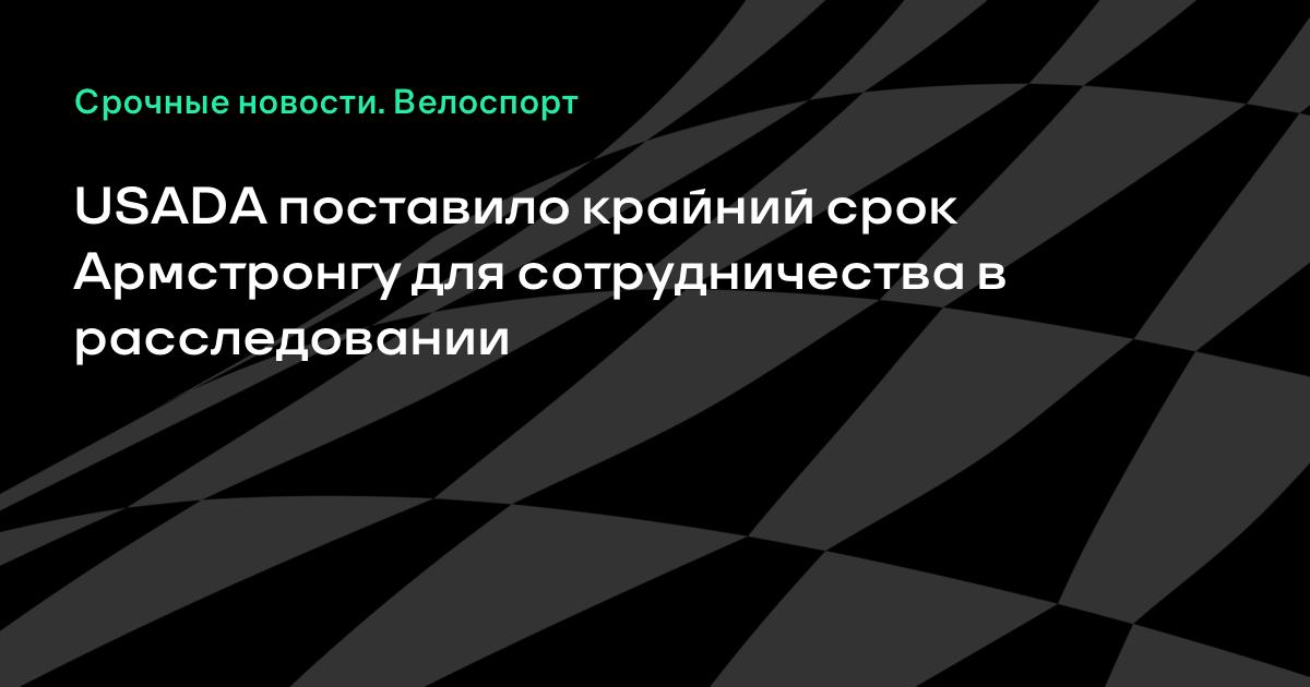 Американское антидопинговое агентство (USADA) поставило крайний срок Лэнсу Армстронгу для полного сотрудничества по допинговому делу.