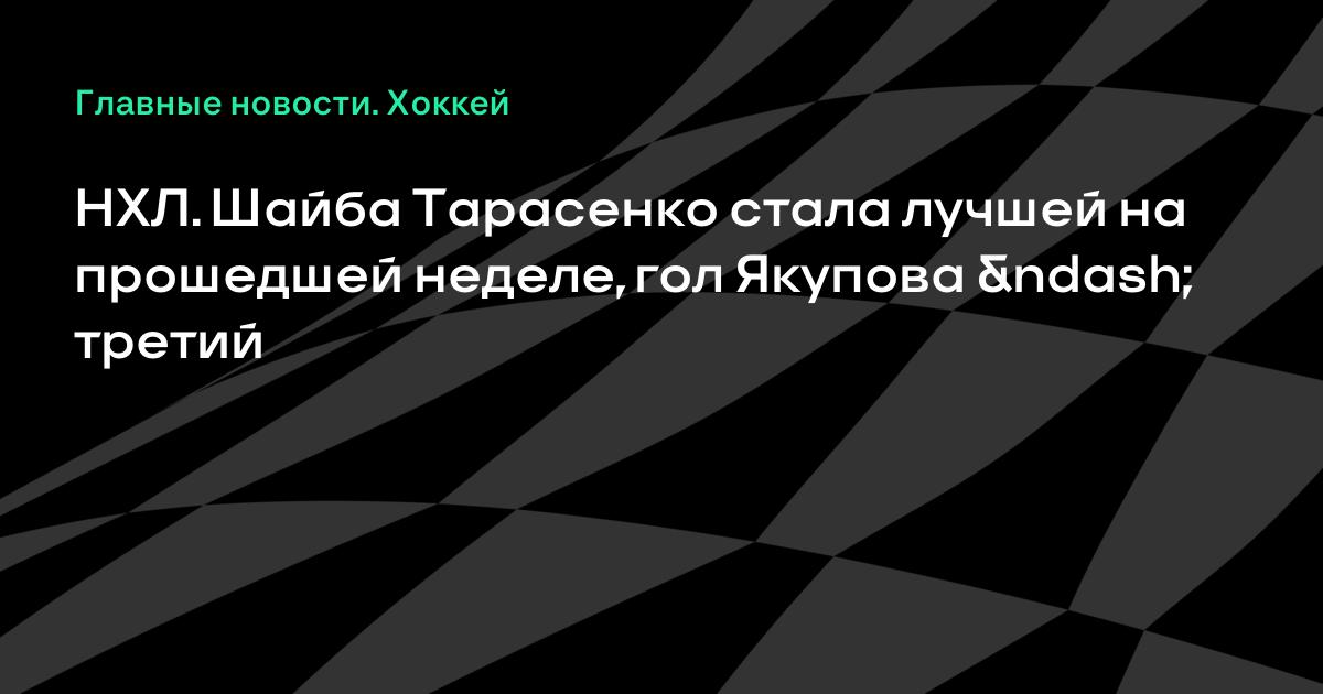 НХЛ. Шайба Тарасенко стала лучшей на прошедшей неделе, гол Якупова – третий
