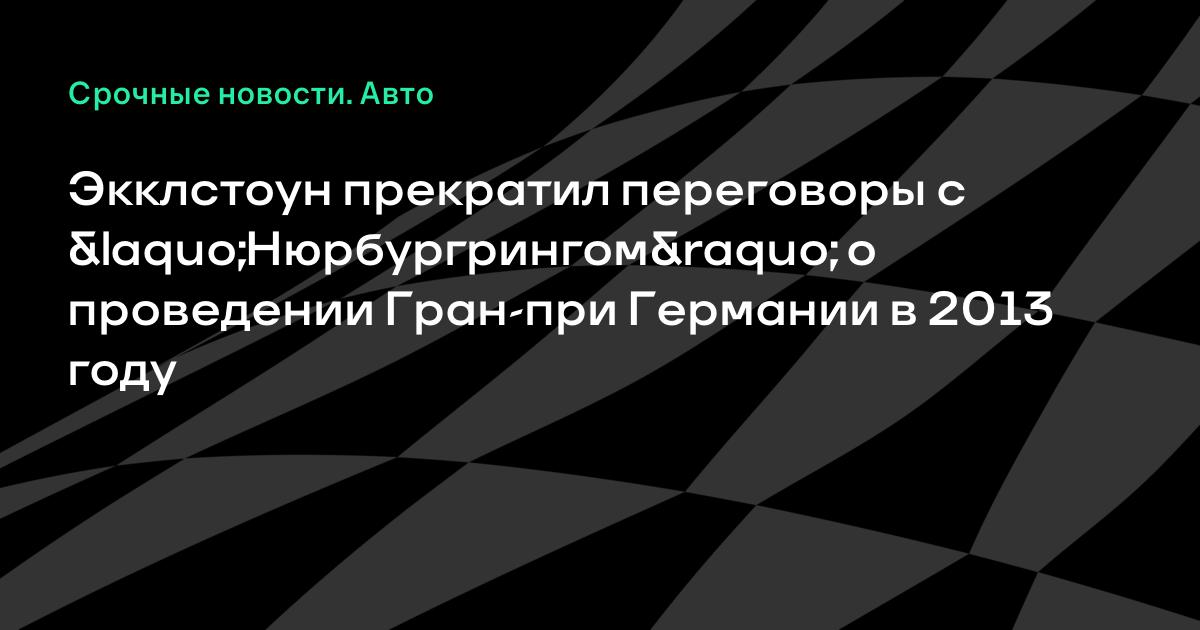 Промоутер «Формулы-1» Берни Экклстоун прекратил переговоры с руководством «Нюрбургринга» о проведении Гран-при Германии в 2013 году. Напомним, что руководство знаменитой трассы испытывает серьезные финансовые проблемы, но Экклстоун все равно высказывал надежду провести на «Нюрбургринге» гонку «Формулы-1» в предстоящем сезоне.