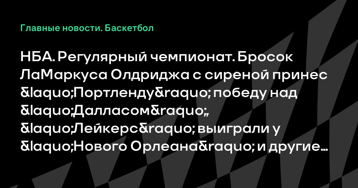 НБА. Регулярный чемпионат. Бросок ЛаМаркуса Олдриджа с сиреной принес «Портленду» победу над «Далласом», «Лейкерс» выиграли у «Нового Орлеана» и другие результаты