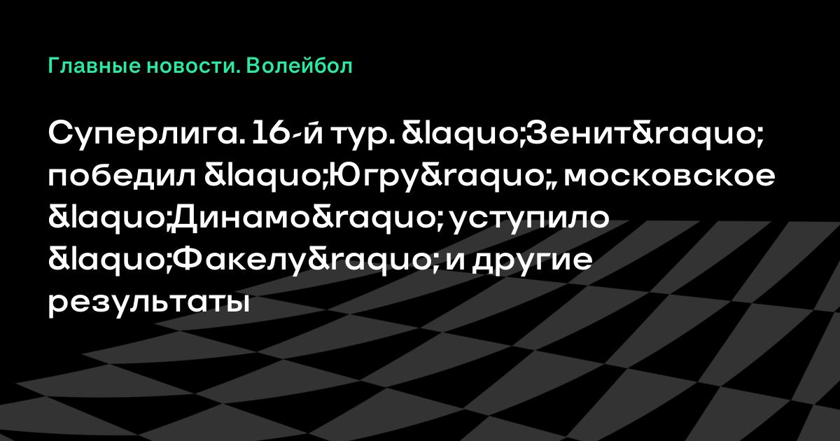Суперлига. 16-й тур. «Зенит» победил «Югру», московское «Динамо» уступило «Факелу» и другие результаты