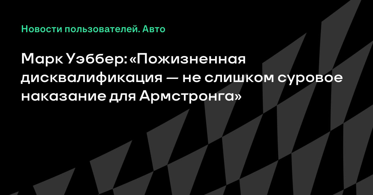 Марк Уэббер: «Пожизненная дисквалификация — не слишком суровое наказание для Армстронга»