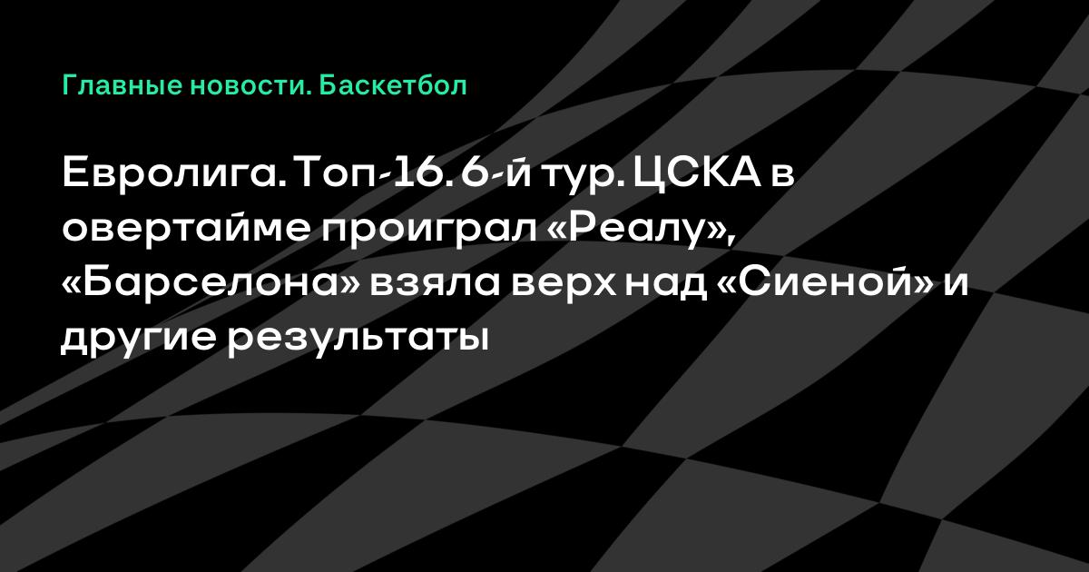 Евролига. Топ-16. 6-й тур. ЦСКА в овертайме проиграл «Реалу», «Барселона» взяла верх над «Сиеной» и другие результаты