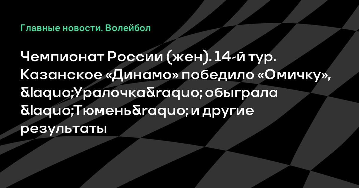 Сегодня в женском чемпионате России по волейболу прошел 14-й тур. В центральном матче казанское «Динамо» обыграло «Омичку» (3-0).
