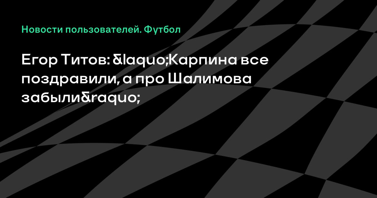 Егор Титов: «Карпина все поздравили, а про Шалимова забыли»