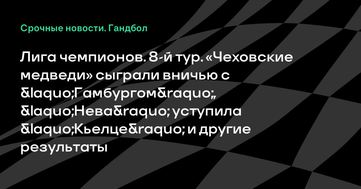 В 8-м туре группового этапа гандбольной Лиги чемпионов «Чеховские медведи» сыграли вничью с немецким «Гамбургом» (29:29), питерский «Университет-Нева» проиграл польскому «Виве Тарги Кьелце» (29:30).