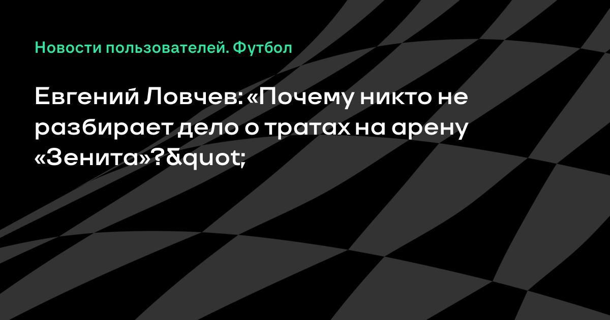 Евгений Ловчев: «Почему никто не разбирает дело о тратах на арену «Зенита»?"