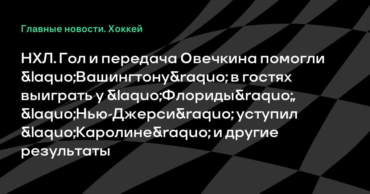 НХЛ. Гол и передача Овечкина помогли «Вашингтону» в гостях выиграть у «Флориды», «Нью-Джерси» уступил «Каролине» и другие результаты
