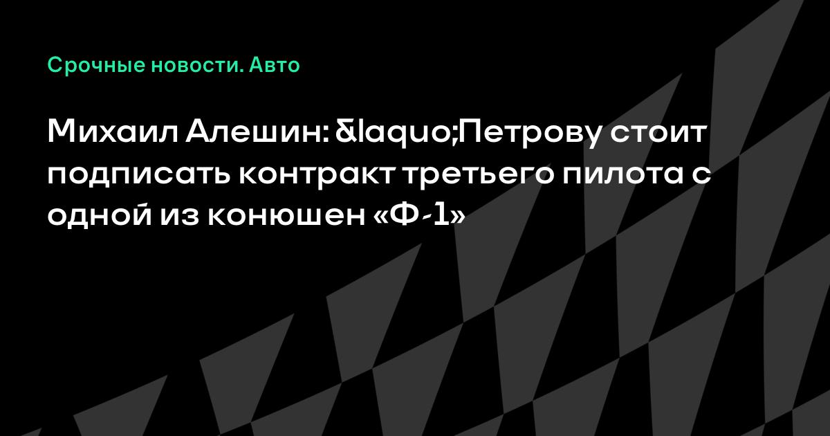 Михаил Алешин: «Петрову стоит подписать контракт третьего пилота с одной из конюшен «Ф-1»