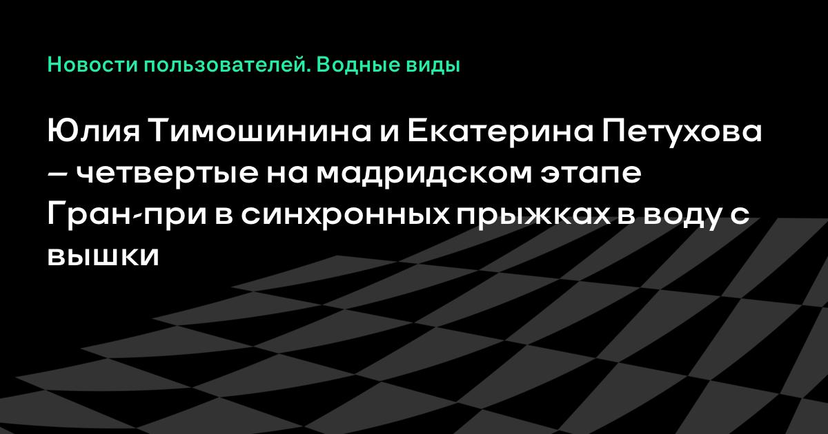 Вчера, 15 февраля, в Мадриде (Испания) стартовал первый этап Гран-при по прыжкам в воду. Россиянки Юлия Тимошинина и Екатерина Петухова заняли четвертое место в синхронных прыжках в воду с вышки. Победили китаянки Ву Шепин и Лян Цзи. В прыжках с трехметрового трамплина первенствовала китаянка Ван Хан, а россиянки Елена Черных и Кира Щенникова заняли 14-е и 16-е места соответственно. Об этом сообщает Агентство спортивной информации «Весь спорт».