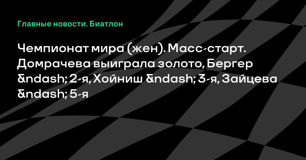 Чемпионат мира (жен). Масс-старт. Домрачева выиграла золото, Бергер – 2-я, Хойниш – 3-я, Зайцева – 5-я