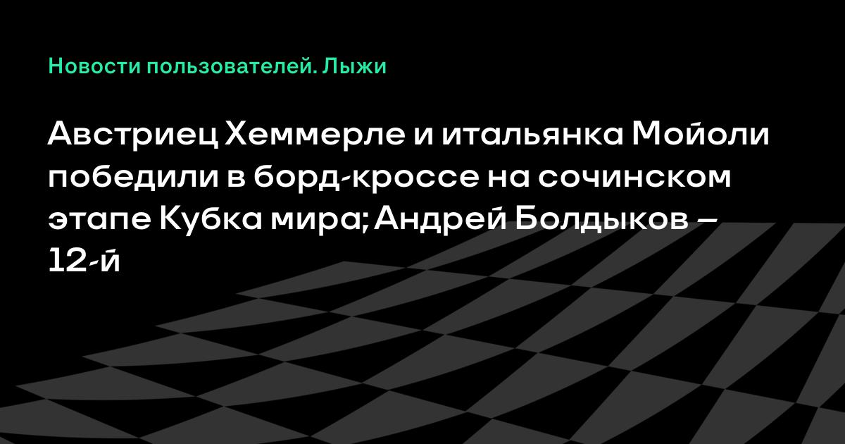 Австриец Хеммерле и итальянка Мойоли победили в борд-кроссе на сочинском этапе Кубка мира; Андрей Болдыков – 12-й