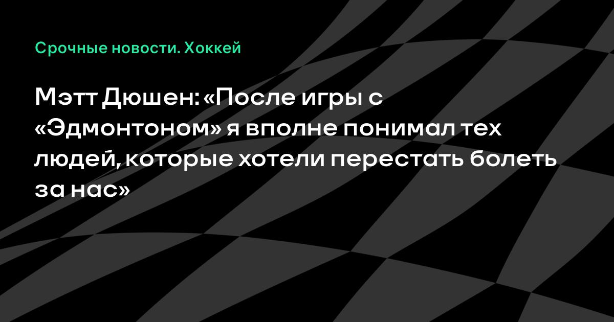 Мэтт Дюшен: «После игры с «Эдмонтоном» я вполне понимал тех людей, которые хотели перестать болеть за нас»