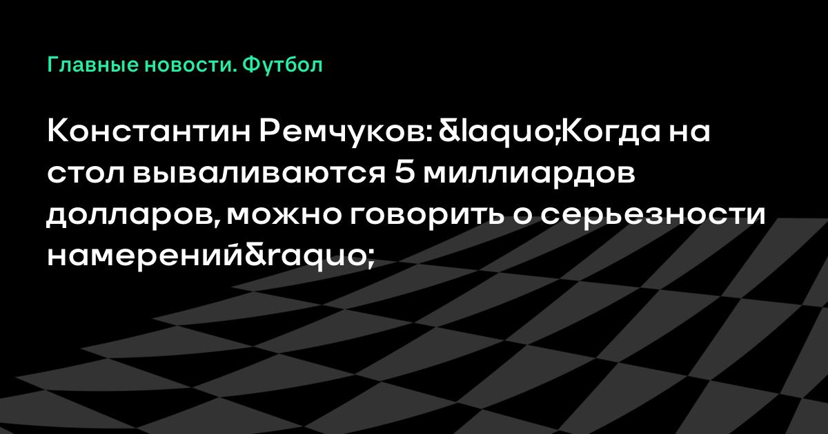 Если бы Миллер давал интервью одно за другим, то это можно было бы назвать обидой. Когда на стол вываливаются 5 миллиардов долларов, невиданные для нашего футбола, то можно говорить о серьезности намерений», — пояснил Ремчуков в эфире программы «Удар головой».