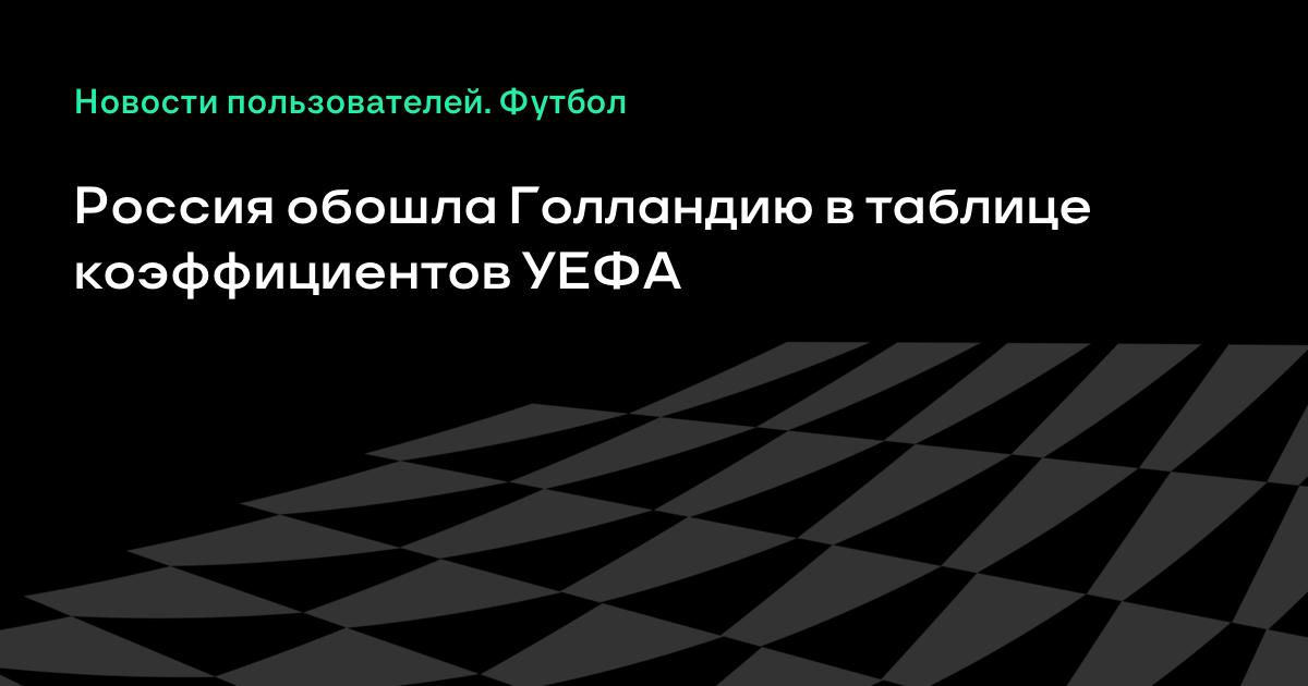 После поражения амстердамского Аякса и благодаря ничьей Анжи Россия набрала 44.832 балла и обошла Голландию в таблице коэффициентов УЕФА, у которой коээфициент остался прежним — 44.729 балла.