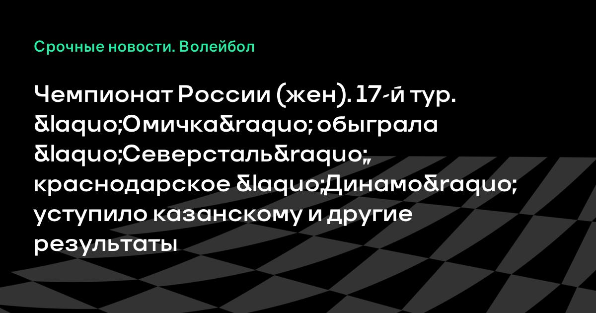 Чемпионат России (жен). 17-й тур. «Омичка» обыграла «Северсталь», краснодарское «Динамо» уступило казанскому и другие результаты
