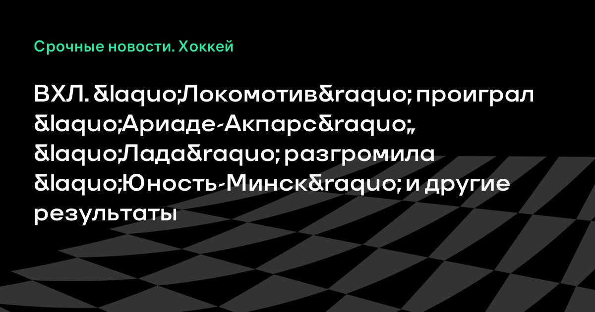 ВХЛ. «Локомотив» проиграл «Ариаде-Акпарс», «Лада» разгромила «Юность-Минск» и другие результаты