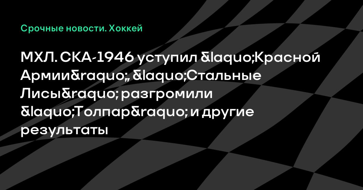 МХЛ. СКА-1946 уступил «Красной Армии», «Стальные Лисы» разгромили «Толпар» и другие результаты