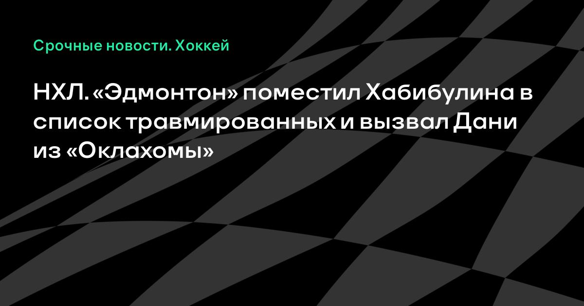 НХЛ. «Эдмонтон» поместил Хабибулина в список травмированных и вызвал Дани из «Оклахомы»