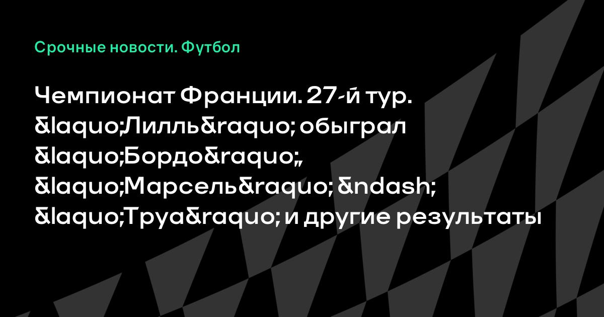 Чемпионат Франции. 27-й тур. «Лилль» обыграл «Бордо», «Марсель» – «Труа» и другие результаты