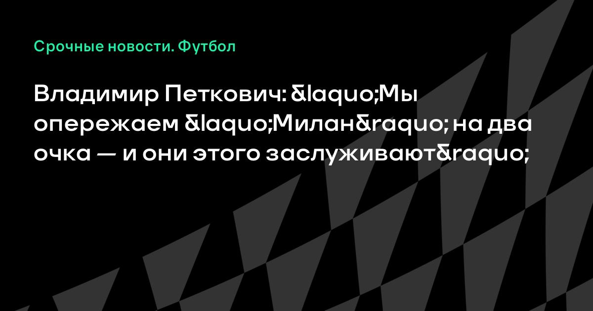 Но «россонери» набрали хороший ход, и показывают великолепный футбол как в Италии, так и Европе — вспомните матч с «Барселоной». Но тем не менее, я верю в свою команду», — приводит слова Петковича Football Italia.