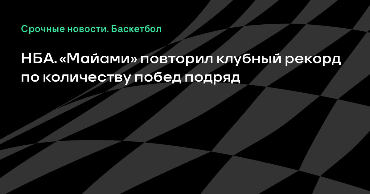 НБА. «Майами» повторил клубный рекорд по количеству побед подряд