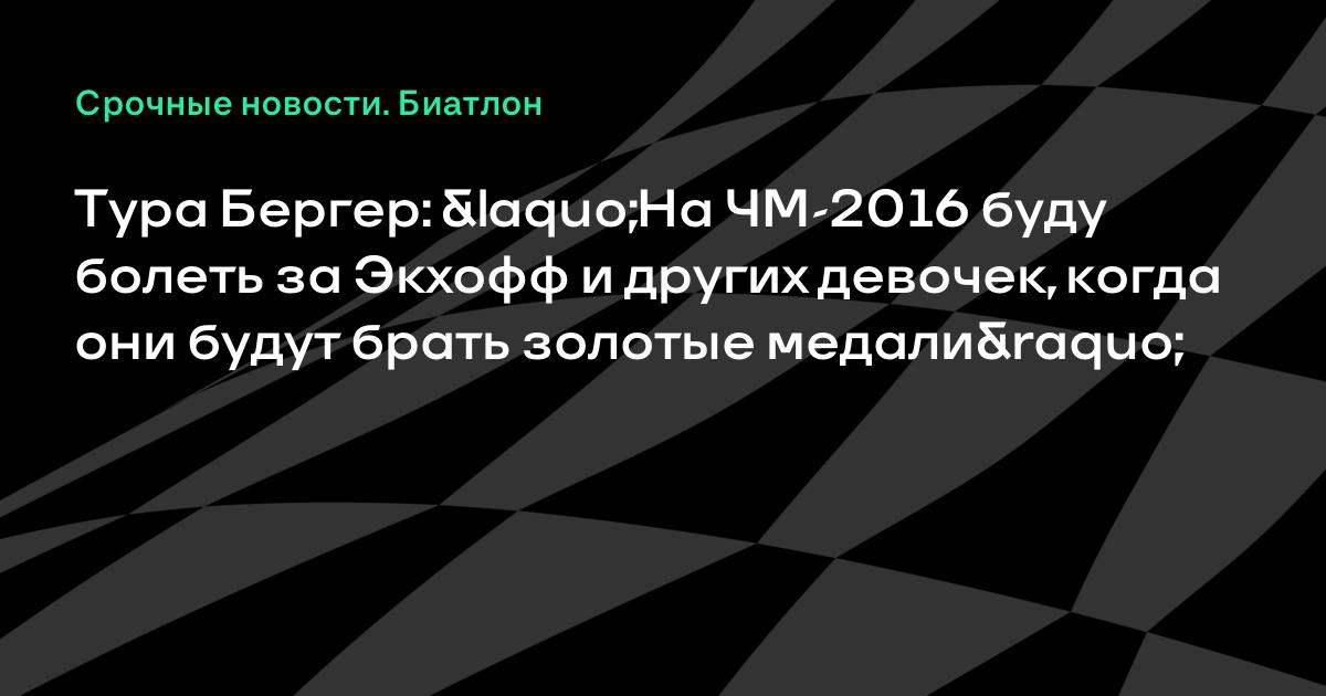 Тура Бергер: «На ЧМ-2016 буду болеть за Экхофф и других девочек, когда они будут брать золотые медали»