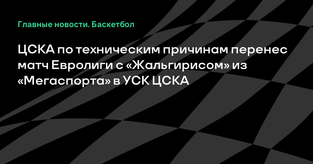 ЦСКА по техническим причинам перенес матч Евролиги с «Жальгирисом» из «Мегаспорта» в УСК ЦСКА