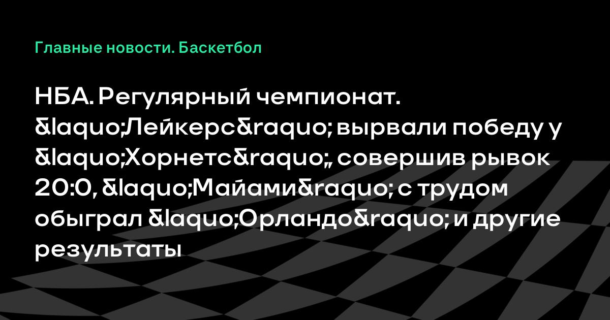 НБА. Регулярный чемпионат. «Лейкерс» вырвали победу у «Хорнетс», совершив рывок 20:0, «Майами» с трудом обыграл «Орландо» и другие результаты