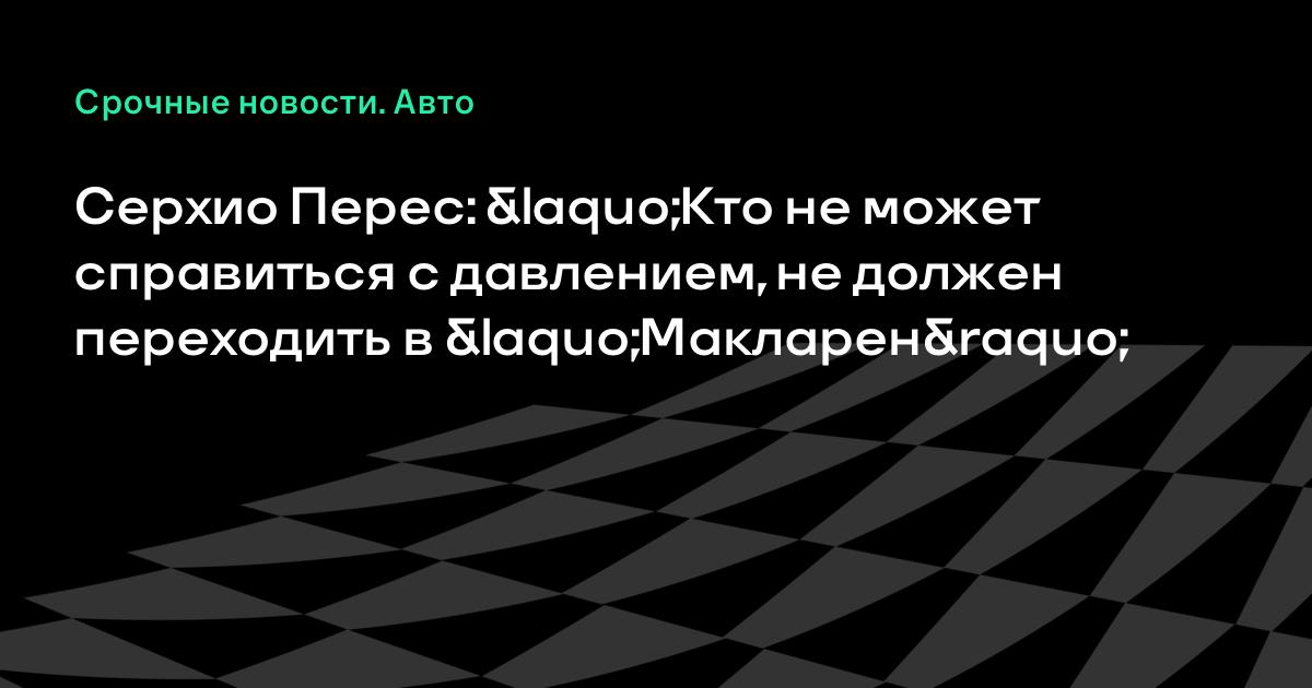 Серхио Перес: «Кто не может справиться с давлением, не должен переходить в «Макларен»