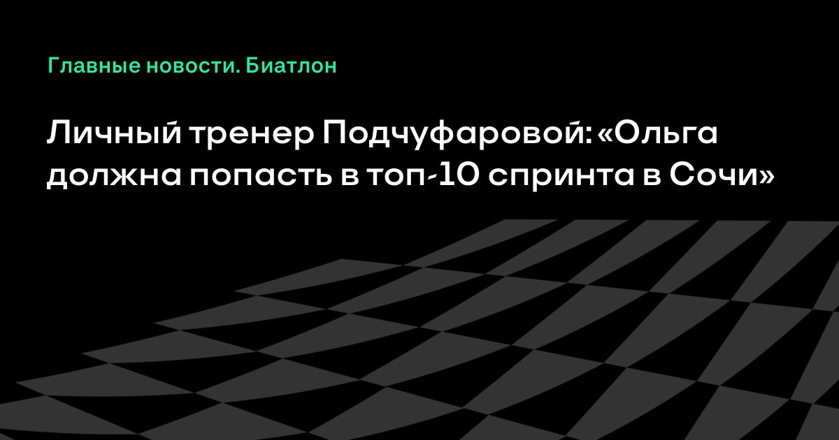 Юрий Лелин, личный тренер 20-летней биатлонистки Ольги Подчуфаровой, рассказал о целях подопечной на дебютный этап Кубка мира в Сочи.