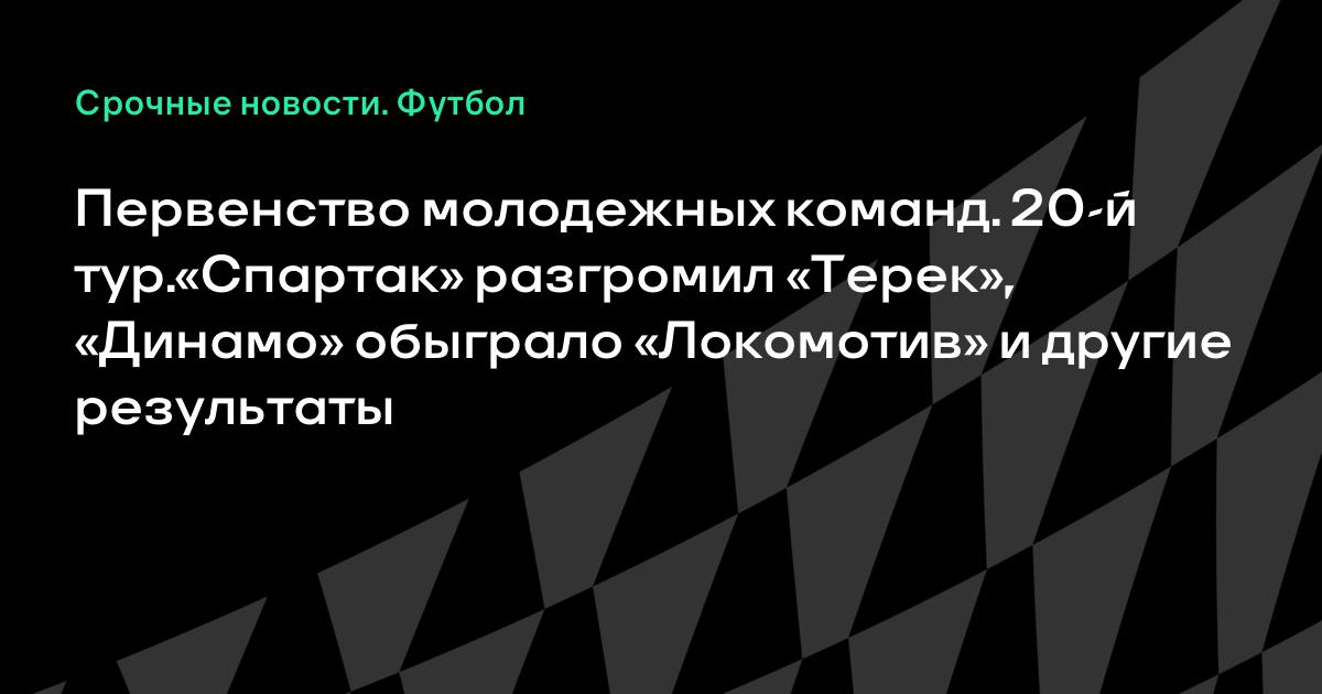 Первенство молодежных команд. 20-й тур.«Спартак» разгромил «Терек», «Динамо» обыграло «Локомотив» и другие результаты