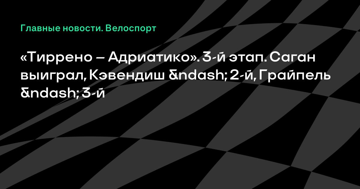 Словацкий велогонщик Петер Саган одержал победу на третьем этапе многодневки «Тиррено – Адриатико». Марк Кэвендиш – 2-й, Андрэ Грайпель – 3-й.