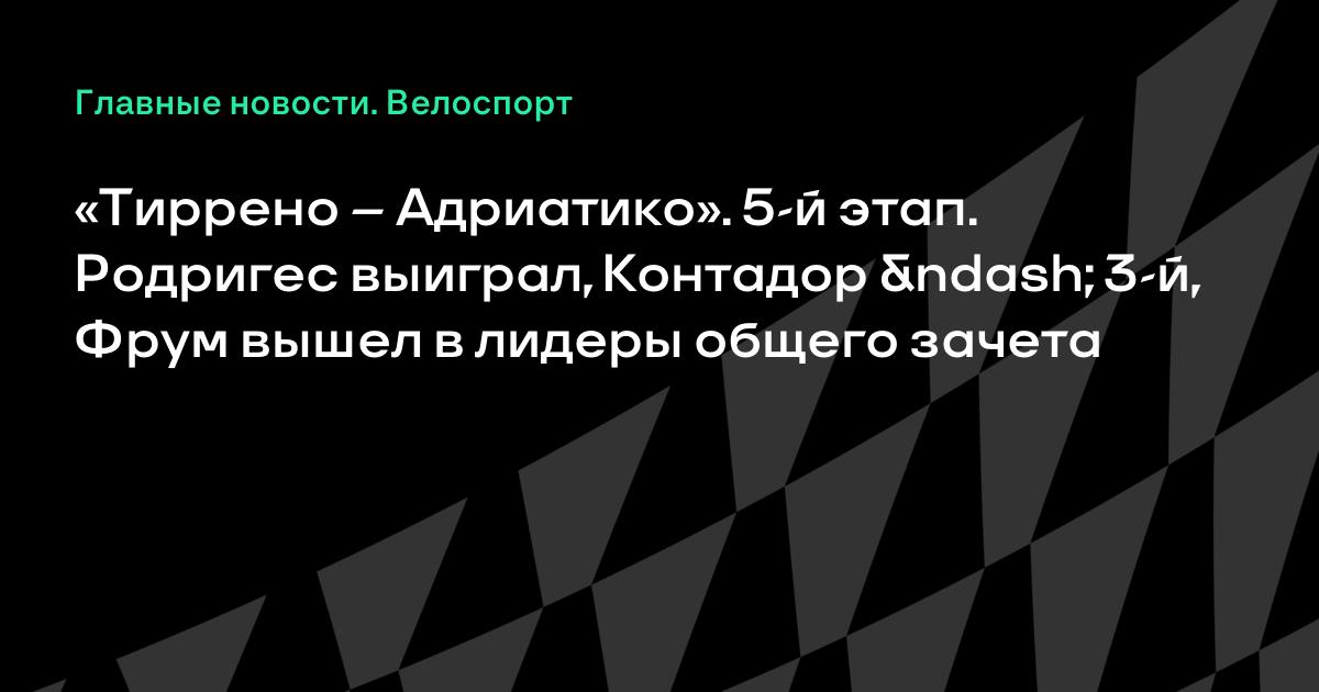 Испанский гонщик российской команды «Катюша» Хоаким Родригес выиграл пятый этап многодневки «Тиррено – Адриатико». Этап включал в себя три горных подъема, наименьший из которых был ближе к финишу. Британец Кристофер Фрум возглавил общий зачет гонки.