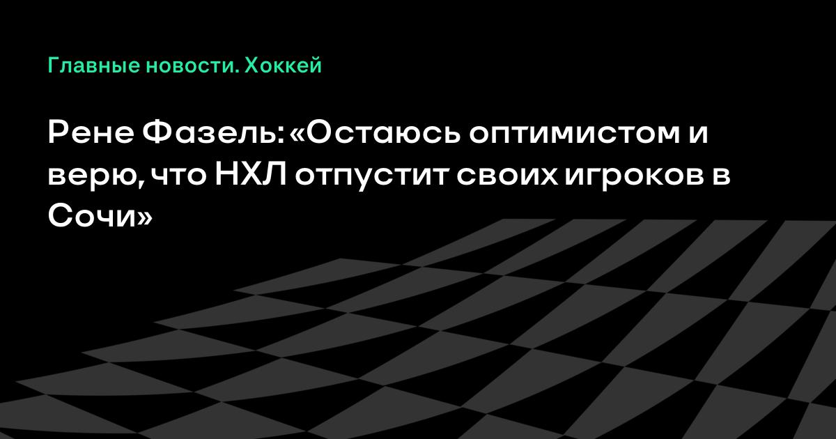 Рене Фазель: «Остаюсь оптимистом и верю, что НХЛ отпустит своих игроков в Сочи»