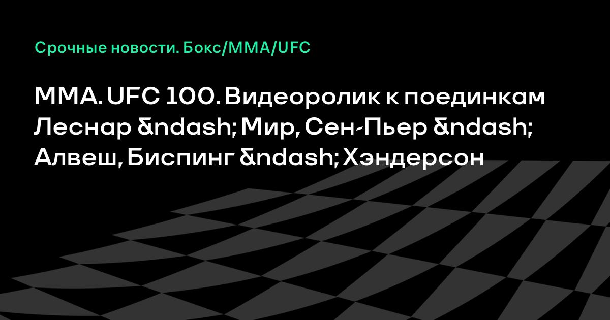 Видеоролик к юбилейному шоу UFC 100, которое состоится 11 июля в Лас-Вегасе (США). В рамках тяжелого веса чемпион организации Брок Леснар проведет поединок против временного чемпиона Фрэнка Мира; чемпион в полусреднем весе Джордж Сен-Пьер сразится с Тиаго Алвешом; Майкл Биспинг встретится с Дэном Хэндерсоном.