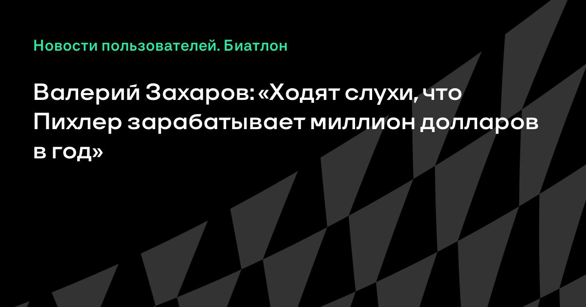 Валерий Захаров: «Ходят слухи, что Пихлер зарабатывает миллион долларов в год»