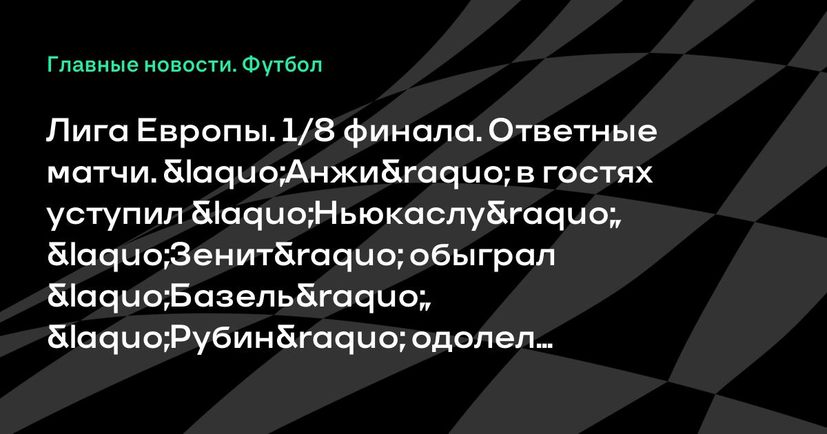 Лига Европы. 1/8 финала. Ответные матчи. «Анжи» в гостях уступил «Ньюкаслу», «Зенит» обыграл «Базель», «Рубин» одолел «Леванте»