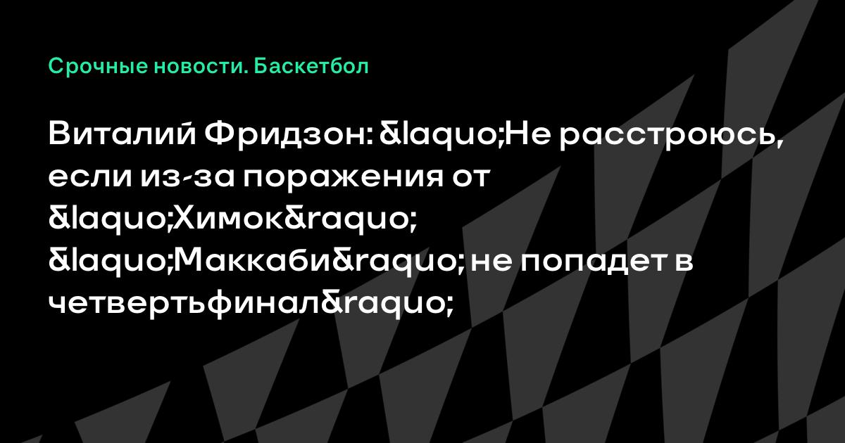 Виталий Фридзон: «Не расстроюсь, если из-за поражения от «Химок» «Маккаби» не попадет в четвертьфинал»