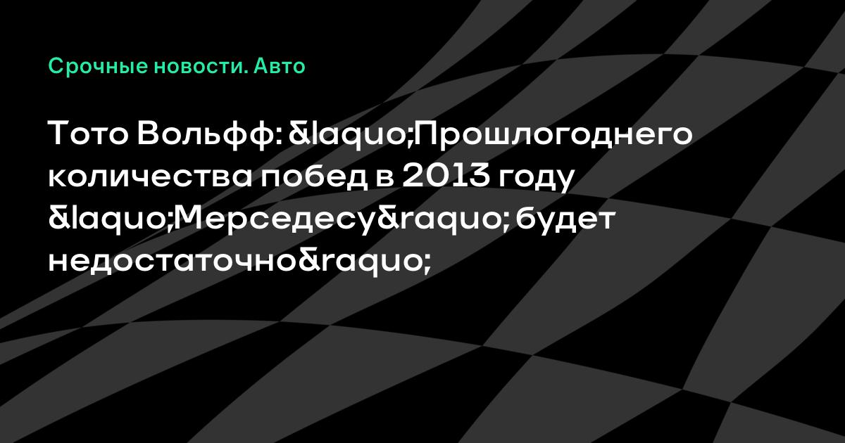 Исполнительный директор команды «Мерседес» Тото Вольфф заявил, что его команда в 2013 году должна одержать больше одной победы, чтобы этот сезон можно было считать успешным.