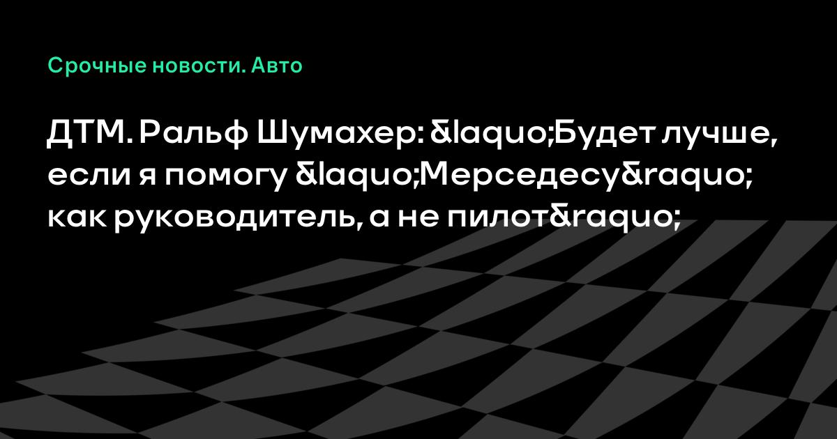 ДТМ. Ральф Шумахер: «Будет лучше, если я помогу «Мерседесу» как руководитель, а не пилот»