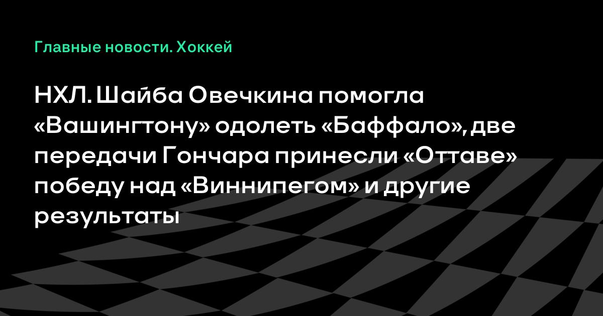 НХЛ. Шайба Овечкина помогла «Вашингтону» одолеть «Баффало», две передачи Гончара принесли «Оттаве» победу над «Виннипегом» и другие результаты