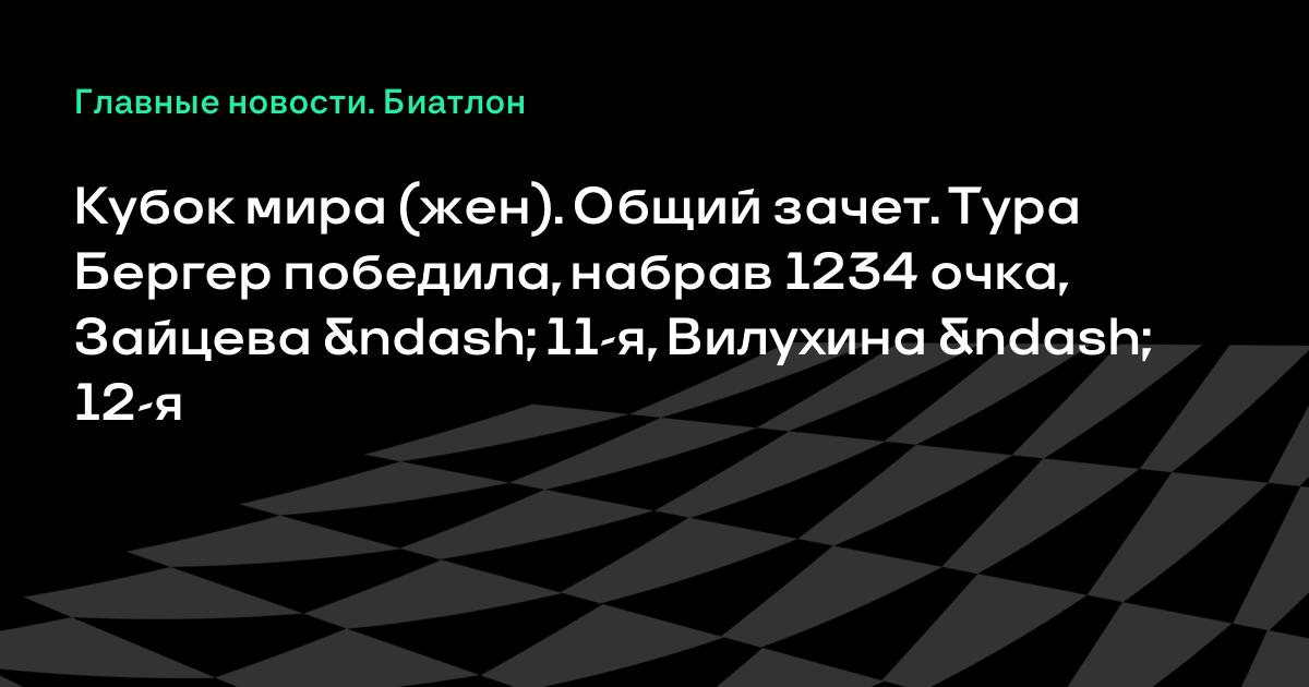Кубок мира (жен). Общий зачет. Тура Бергер победила, набрав 1234 очка, Зайцева – 11-я, Вилухина – 12-я