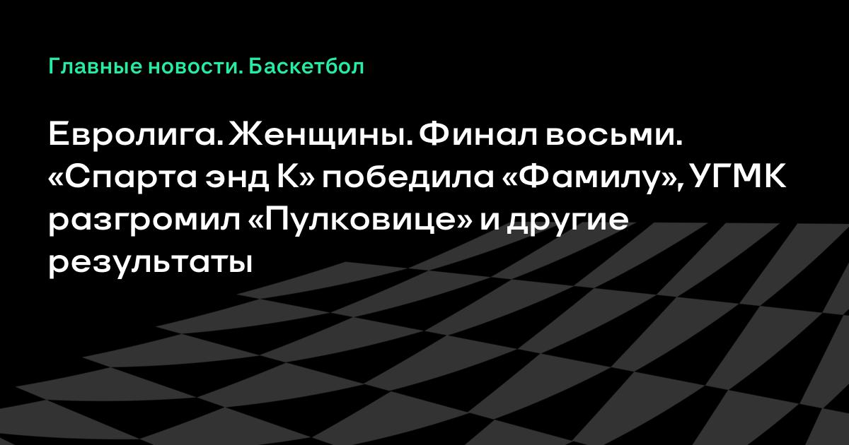 Евролига. Женщины. Финал восьми. «Спарта энд К» победила «Фамилу», УГМК разгромил «Пулковице» и другие результаты
