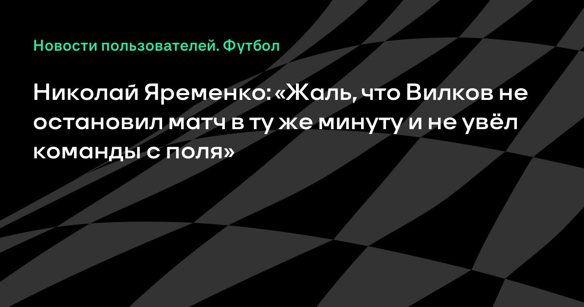Николай Яременко: «Жаль, что Вилков не остановил матч в ту же минуту и не увёл команды с поля»