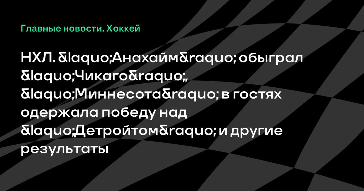 НХЛ. «Анахайм» обыграл «Чикаго», «Миннесота» в гостях одержала победу над «Детройтом» и другие результаты