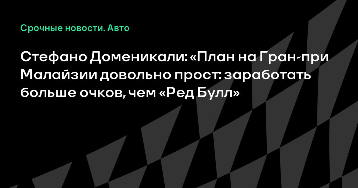 Мой план на предстоящий гоночный уик-энд в Малайзии довольно прост: так как очки за субботние результаты не дают, я предпочитаю, чтобы команда зарабатывала очки в воскресенье – и чтобы этих очков было больше, чем у «Ред Булл»! Однако помимо этого также нашей целью является хорошее выступление в квалификации, ведь из глубины пелотона всегда стартовать сложнее. Старт с чистой позиции может позволить вам обеспечить ключевую разницу, так как ты сможешь атаковать так, как тебе больше нравится. По ходу гонки самая важная часть игры будет заключаться в том, как пилоты будут следить за состоянием резины. К тому же, нужно еще посмотреть, какими будут погодные условия по ходу гонки», – цитирует Доменикали официальный сайт «Формулы-1».
