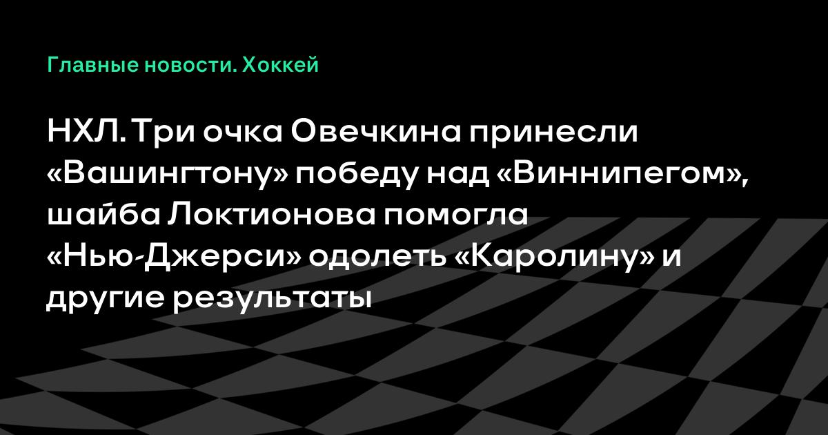НХЛ. Три очка Овечкина принесли «Вашингтону» победу над «Виннипегом», шайба Локтионова помогла «Нью-Джерси» одолеть «Каролину» и другие результаты